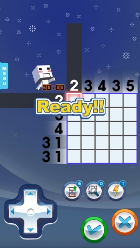 游戏玩法类似扫雷+数独,每个谜题都是包含一张隐藏图片的方块图阵;在逻辑方块游戏中,系统会在方块的左边和顶部提供数字提示,表示该行或列应该连续标记的方块数量;如果有多个数字提示,比如2 3,表示该行或列需连续标记2个方块,然后空出N个格子,接着连续标记3个方块;标记方块,点击"V"按钮,标识已核对方块,点击"X"按钮;标记错误时,会扣去相应的惩罚时间...如果您是一个数独或者扫雷爱好者,或者想挑战极限,那么这款小游戏一定是您的最佳选择!