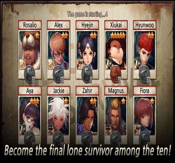 把游戏归纳成一句话就是十个角色在荒岛上不择手段地战到只剩一人。你可以选择不同性格的角色来开始比赛,还可以搜集许多资源、制作各种武器和道具,还可以学习策略招式等。