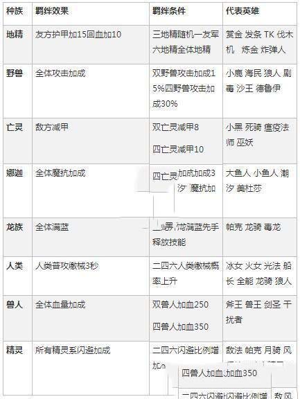 种族:每个种族在场上的不同类棋子达到一定数目就可以发起种族羁绊,拥有特定的种族效果。目前有:人类,野兽,亡灵,地精,巨魔,精灵,恶魔,娜迦,食人魔,元素,矮人,龙。